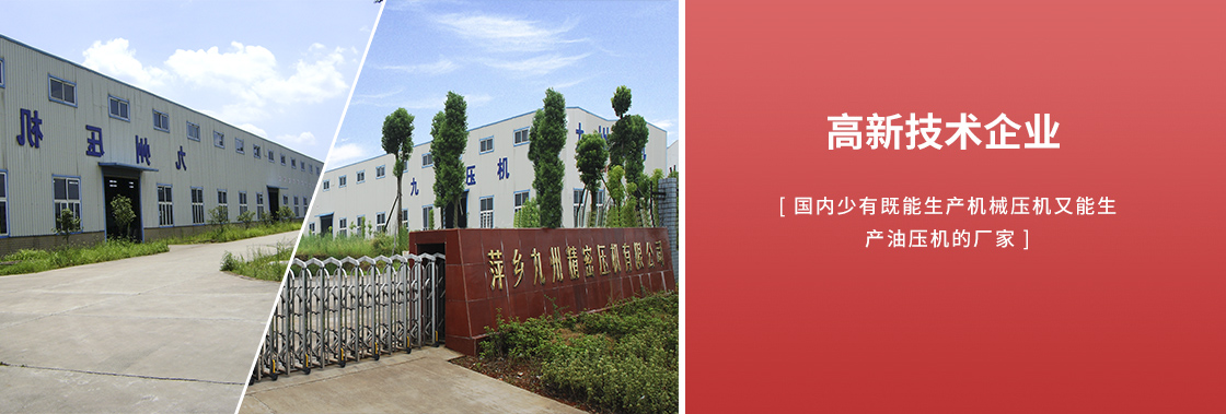 萍鄉(xiāng)九州精密壓機(jī)有限公司是國(guó)家高新技術(shù)企業(yè),位于江西省萍鄉(xiāng)市高新技術(shù)工業(yè)園北區(qū)7號(hào)(319國(guó)道邊),其前身是萍鄉(xiāng)無(wú)線(xiàn)電專(zhuān)用設(shè)備廠(江西液壓機(jī)械廠),是工業(yè)和信息產(chǎn)業(yè)部下屬的壓機(jī)專(zhuān)業(yè)制造廠家。公司地理位置優(yōu)越,交通便利,離湖南長(zhǎng)沙黃花機(jī)場(chǎng)約100公里,距江西萍鄉(xiāng)火車(chē)站約5公里,高鐵萍鄉(xiāng)北站3公里,浙贛線(xiàn)所經(jīng)火車(chē)都會(huì)在萍鄉(xiāng)站停靠,離滬昆高速公路萍鄉(xiāng)出口約2公里。